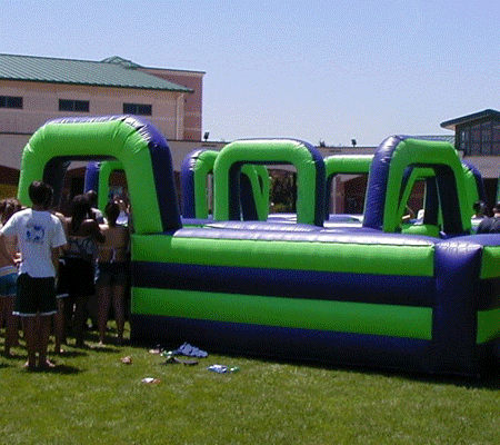 Water Tag Maze is a large style maze, complete with goggles, soaker guns and strategic fill stations for participants to continue soaking with! Up to 10 participants at a time may enjoy this attraction designed for all ages. Jump out behind walls, crouch and spray your opponent through round windows, dive behind hiding structures. The water tag maze is sure to please all of your participants in warm weather. Recommended use on grass but we can set up on concrete or asphalt as well.